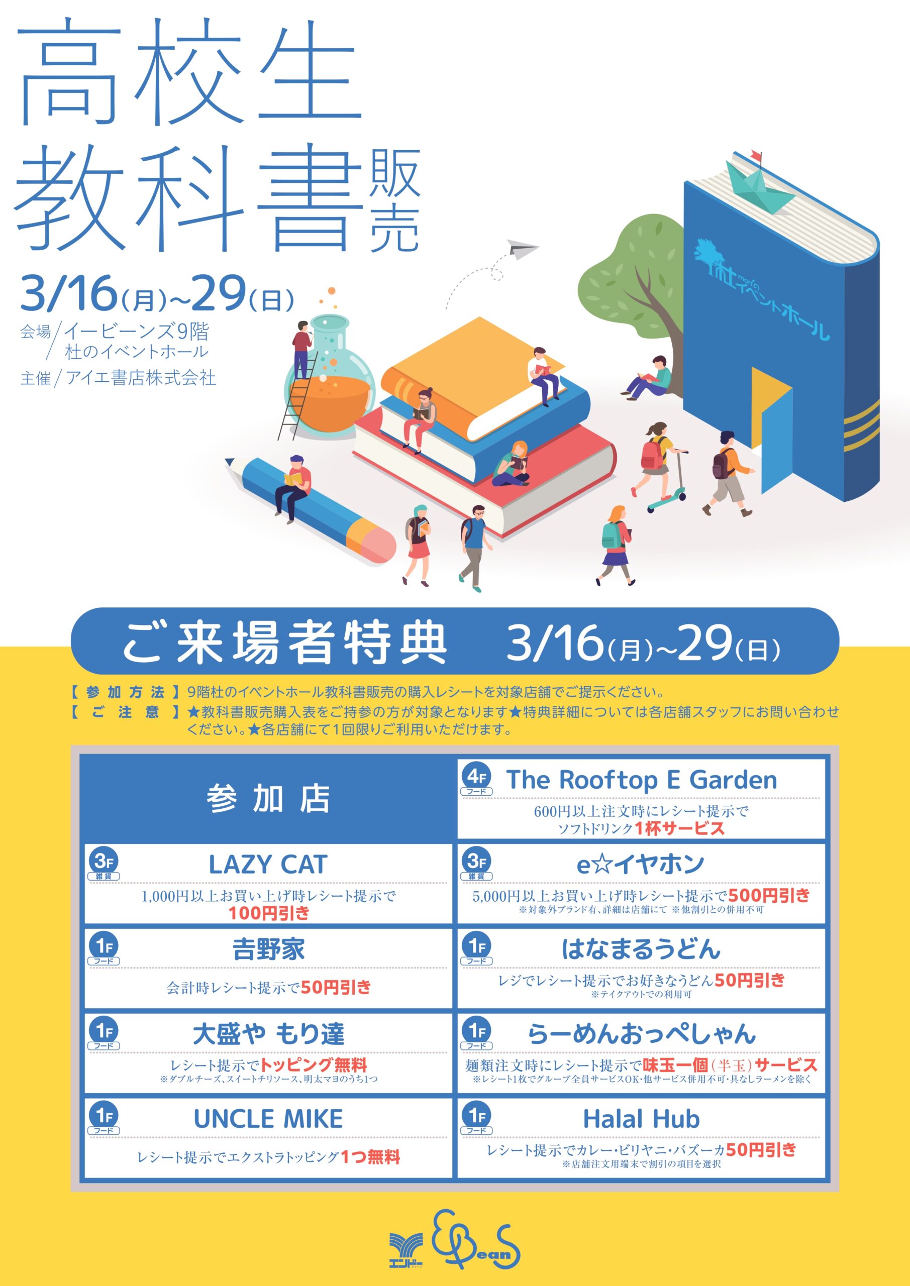 9階杜のイベントホール教科書販売で購入したレシートをご提示でお得な特典をご利用いただけます!