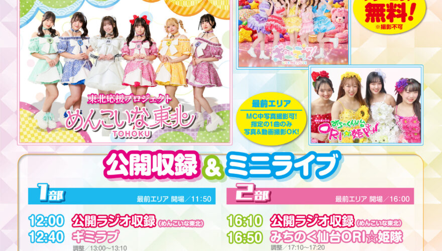 【日程】5月2日(土) 【時間】1部:12:00~、2部:1 … 続きを読む めんこいな東北 定期公演-supported byせんだい堂-開催!