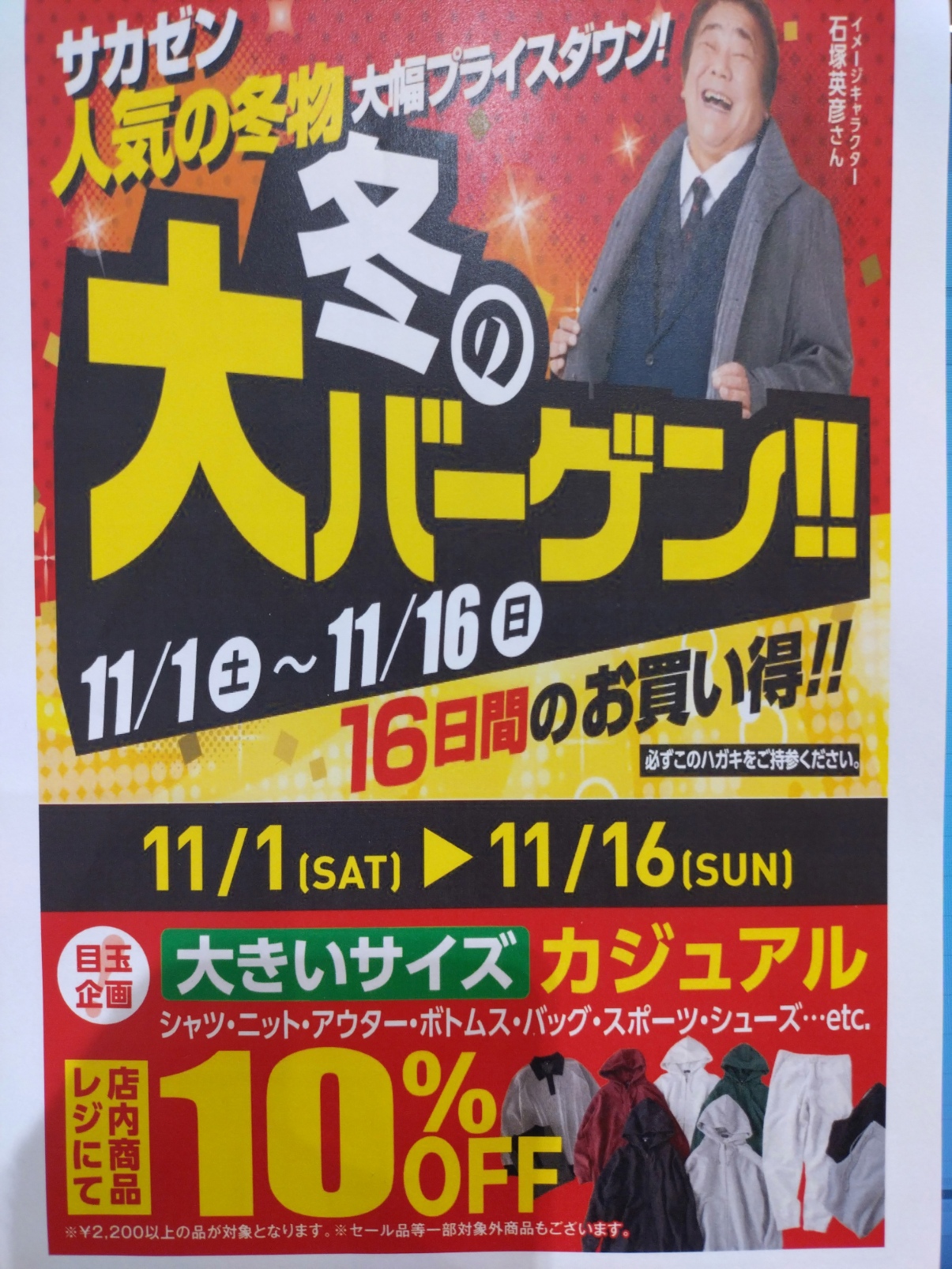 【3階 サカゼン】11/1(土)〜11/16(日)までサカゼン冬の大バーゲン開催!