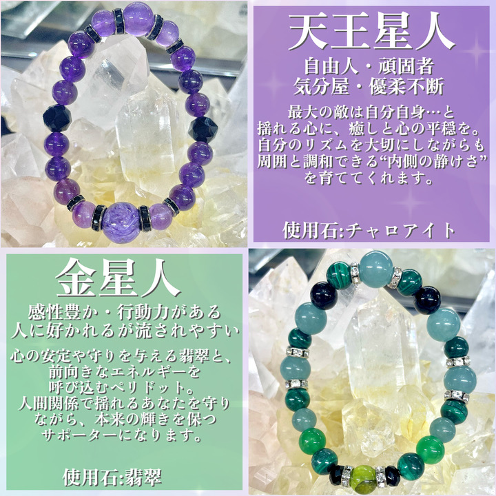 それぞれの星人の性質に合ったパワーストーンを使用したオリジナルのブレスレット、ぜひお試しくださいませ💁🏻‍♀️♪