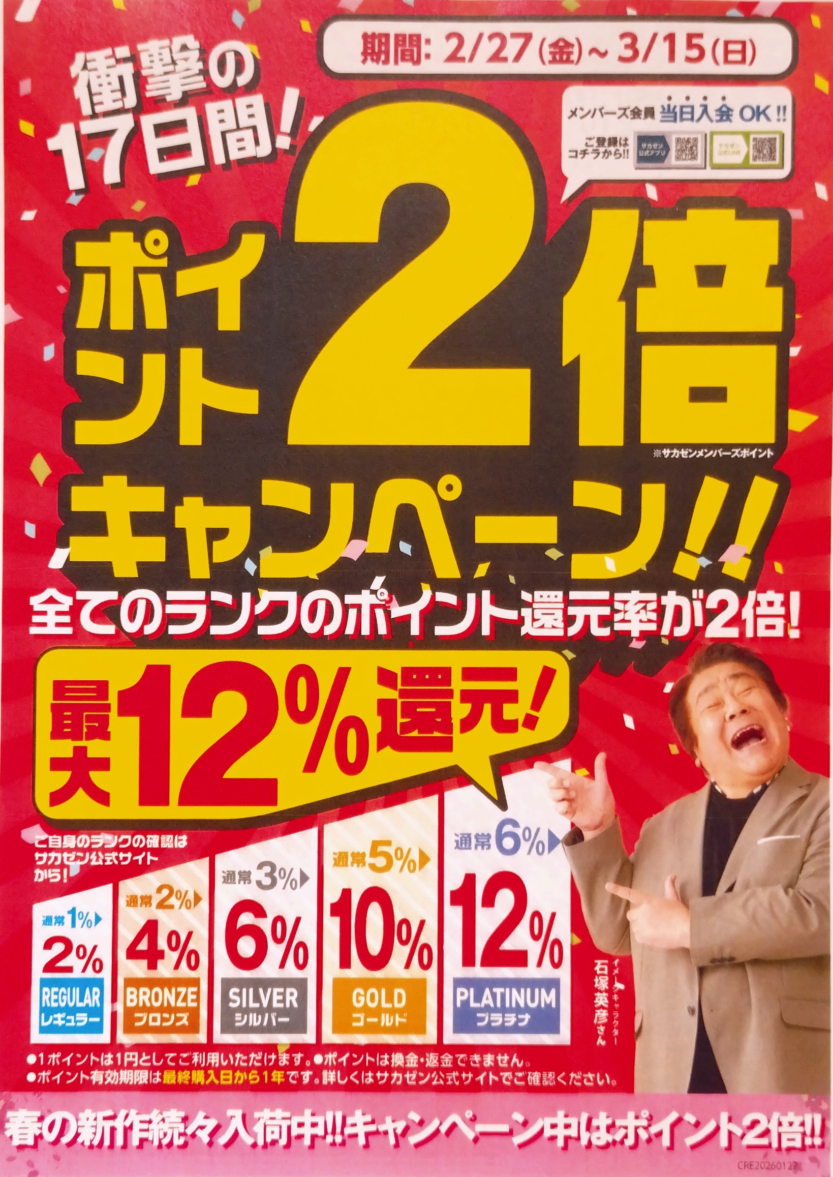 【3階サカゼン】サカゼン ポイント2倍キャンペーン