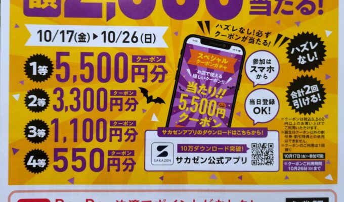 【3階 サカゼン】サカゼンジャンボキャンペーン! 割引クーポンが当たる!